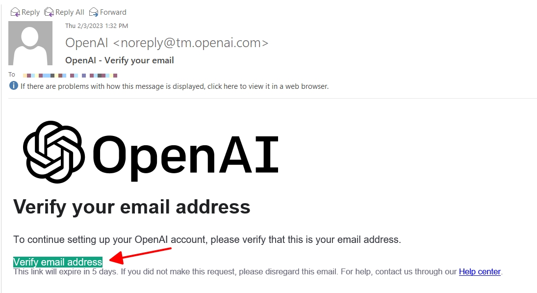 Khi bạn nhận được email từ ChatGPT, hãy bấm vào "Verify email address" để xác thực email.