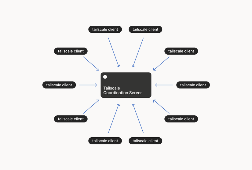Mỗi Node kết nối với server điều phối của tailscale (login.tailscale.com) và để lại ghi chú như public key và đường đến node đó.